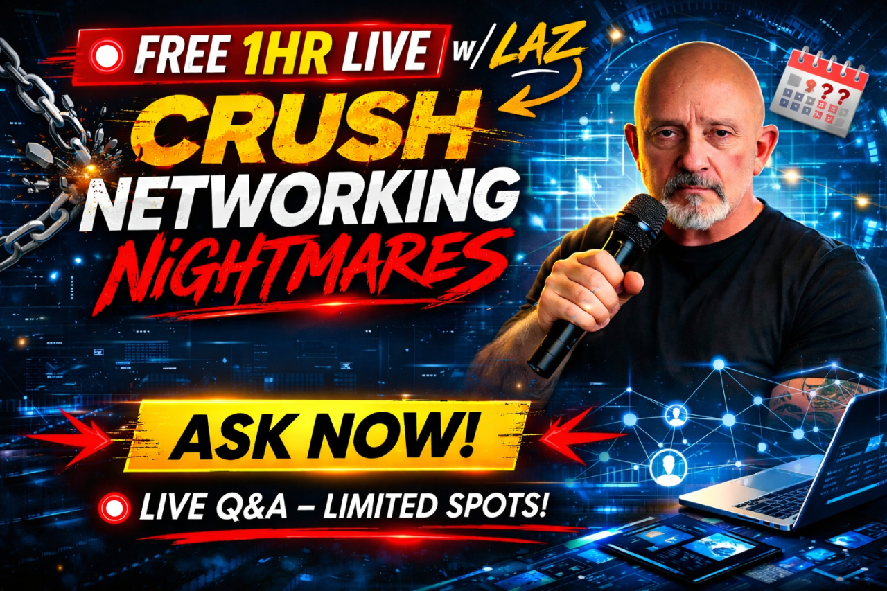 FREE 1 Hour LIVE w/Laz Q&A Networking Nightmares LIFETIME RECORDINGS